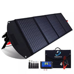 This high-efficiency monocrystalline solar panel features a lightweight, foldable design with an Anderson connector for easy integration with solar generators and batteries.